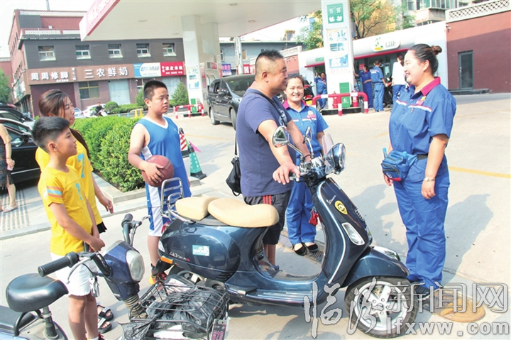 臨汾新聞網訊 “是的,顧客到加油站給摩托車加油時,需在5米外熄火,然后將摩托車推到加油機前加油,隨后仍需推離5米外發動。”7月4日,在中石化臨汾鼓樓北加油站,負責人李燕嚴肅地說:“好多人不理解,經常有人為此吵鬧,但為了大家的安全,我們只有耐心解釋。因為摩托車的發動機是向外暴露的,容易產生火花,尤其是在高溫天氣,稍有不慎后果不堪設想。”圖為加油站工作人員引導騎摩托車市民加油時的情景。