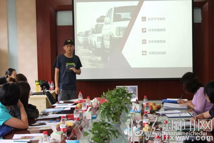 山西尋路者體育文化有限公司負責人:陳志嘉向阿克塞考察團介紹千尋自駕企業概況。