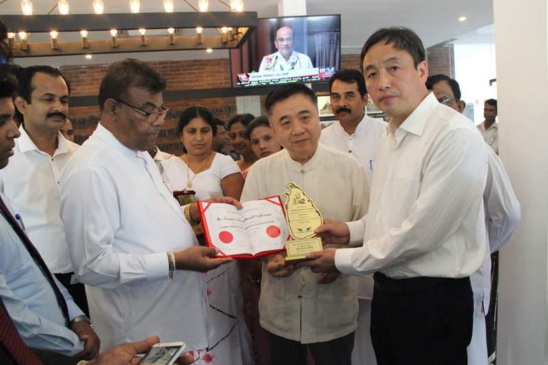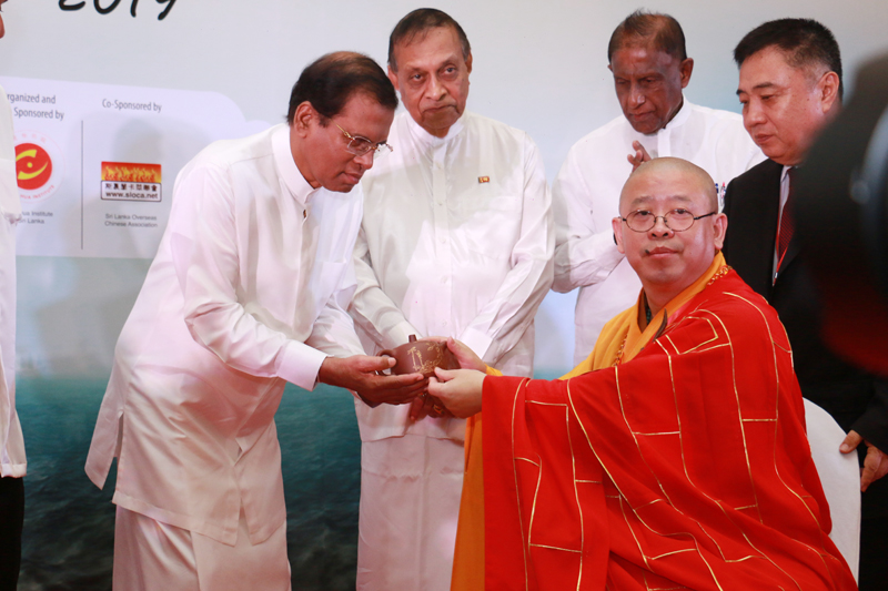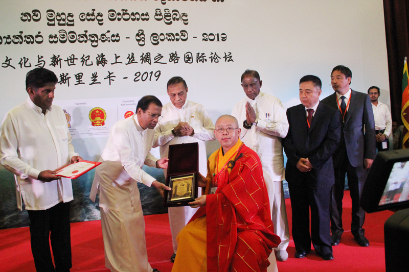 上圖: 斯里蘭卡總統西里塞納先生為中國佛教協會頒獎(釋純一副會長)