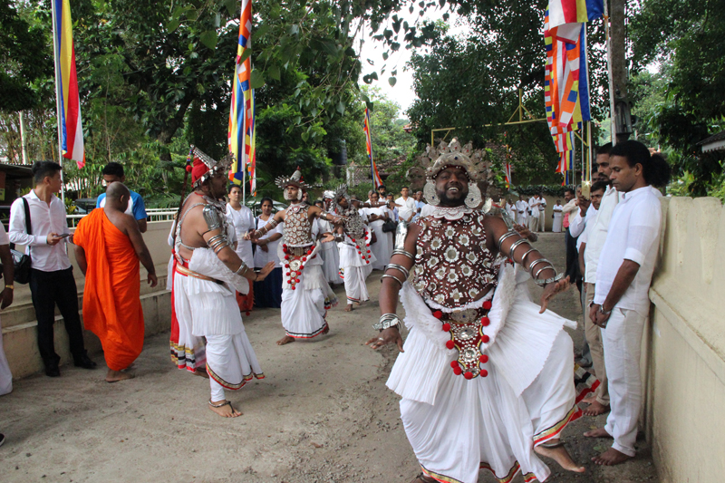 29日下午,會議代表團來到法顯曾經住過兩年的無畏山寺舉辦活動。斯中僧團代表進行了“紀念法顯法師西行求法1620周年祈福法會”活動,無畏山寺監院卡朗吉耶拉特納西里博士、斯里蘭卡龍華書院郝唯民院長、中北省省督薩拉特.艾克納亞克先生分別致辭;中國佛教協會代表釋純一法師、中國臨汾市政府代表趙新喜先生等進行了講話;北京靈光寺釋常藏法師為捐贈“飲用水凈化系統啟用”進行揭幕,釋常藏法師和釋純一法師分別向無畏山寺和卡朗吉耶學校各捐贈飲用水凈化系統;阿努拉德普勒地區區長萬尼納亞克先生致謝詞。