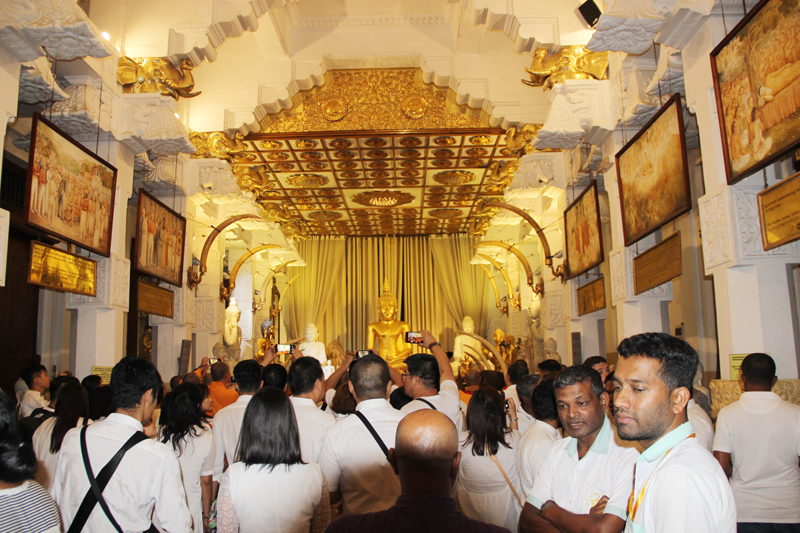 之后,中國佛教協會和臨汾市法顯文化協會代表團在斯里蘭卡龍華書院郝唯民陪同下,還參觀了法顯洞、八大處圣菩提樹和大白塔、波隆納魯瓦古城(Gal Viharaya)石古寺、康提阿斯吉里派舍利閣寺參觀佛牙寺等名勝古跡和世界佛教博物館,在康提市還受到了副僧王、市政府專員錢德納﹒德納貢先生等領導的接見,每到一處都受到了當地人民的熱烈歡迎。