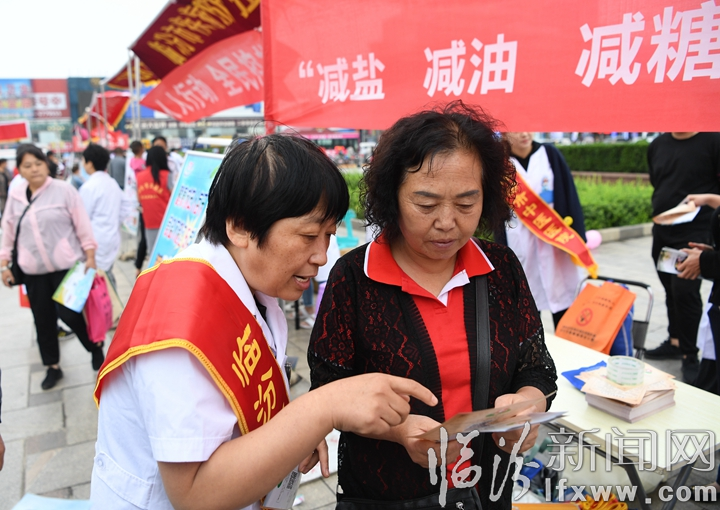 在臨汾市“三減三健”減鹽科普宣傳活動上,臨汾市中醫(yī)醫(yī)院的志愿者在為市民講解“三減三健”知識。
