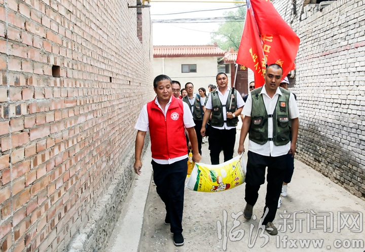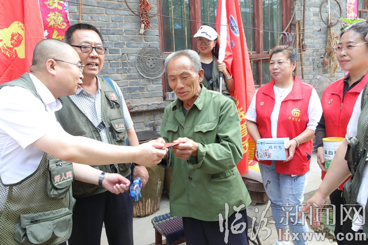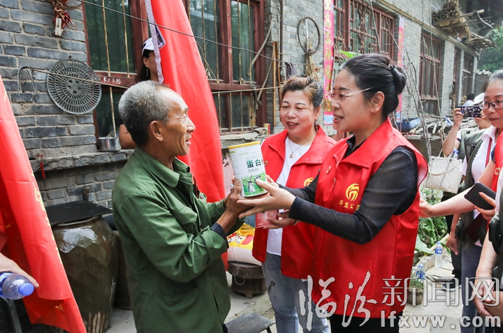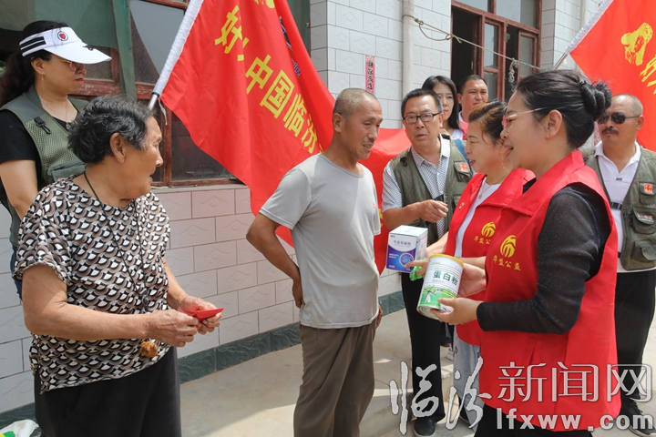 8時整,志愿者們的愛心車隊準(zhǔn)時出發(fā)。大家首先來到堯廟鎮(zhèn)下靳村,為今年94歲、曾經(jīng)參加過臨汾攻堅戰(zhàn)和開國大典的張新春老人送去了面粉、營養(yǎng)品及慰問金,大家與老人噓寒問暖拉家常,聽老人講述革命故事……暖流在農(nóng)家小院涌動。離開張新春老人的家,志愿者一行又奔赴襄汾縣陶寺鄉(xiāng)北張村看望62歲的貧困戶鄧建奎,老人看著贈送的糧油、營養(yǎng)品、慰問金激動地連聲感謝。交談中得知,其老伴早逝,長子患有精神障礙長年住院,現(xiàn)以低保為生,部分志愿者現(xiàn)場又為老人慷慨解囊,獻上了愛心。隨后,志愿者和愛心人士們又到喬李鎮(zhèn)南麻村貧困戶雷隨彪的家中,為他們家送去了面粉、營養(yǎng)品和慰問金。雷隨彪的妻子和長子都患有智力障礙,所幸次子已考上大學(xué),給這個家庭帶來了希望。
