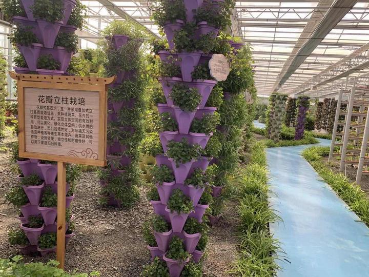 單是培栽方式就實現了多樣化,吸引前來參觀的人員駐足了解。花瓣立柱栽培、漏窗栽培、抱柱栽培、滾動式栽培、圓柱形氣霧栽培等三十多種,培育著廣東菜心、臺灣枸杞、意大利生菜、玉女水果黃瓜等上百種蔬菜品種。