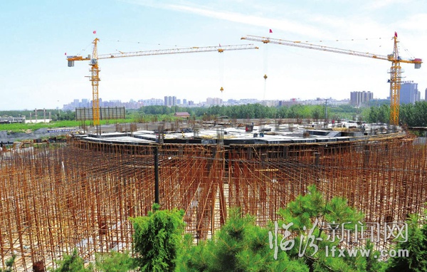 6月9日,臨汾博物館建設工地上,工人們正在緊張施工,一派忙碌景象。臨汾博物館項目占地21畝,主體建筑地下一層,地上3層,總建筑面積30429平方米,總工期三年,于2012年6月奠基開工,預計2015年底竣工,該工程已被列為山西省重點工程建設項目。
