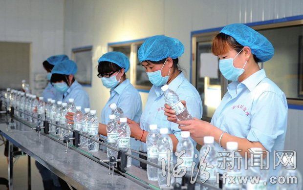 6月10日,曲沃縣紫金甘露飲品有限公司工作人員在車間流水線上作業。該公司依托曲沃景明3000米以下水質資源,加上現代化生產和科學的管理,生產的礦泉水深受市場青睞,遠銷太原、河南等地。