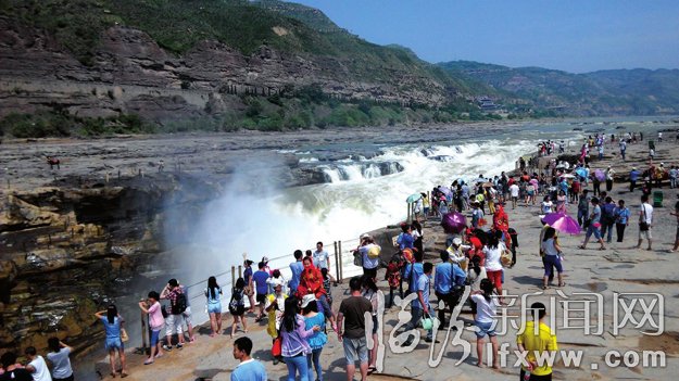 6月30日,雖然烈日炎炎,氣溫超過30℃,但記者在壺口瀑布景區(qū)看到,仍有數(shù)百名游客在觀賞壺口雄姿。一位來自上海的游客說:在這炎熱的夏季,站在黃河岸邊,欣賞壺口壯美雄姿,吹著隨水而來的清爽涼風(fēng),真的好享受啊!”