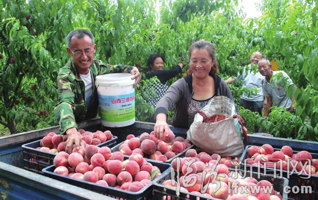 日前,在堯都區賀家莊鄉李家莊村,史民、張仙嬌夫婦正在將鮮桃裝車。近年來,賀家莊發揮土壤無污染、晝夜溫差大等優勢,重點構建鮮桃精品園區,種植的早、中、晚熟鮮桃已達8000畝。賀家莊鮮桃使用農家肥作底肥,果大、色鮮、甜度高,已經獲得無公害農產品、農產品地理標志產品認證。目前,已有400余畝早熟桃到達采摘期。 記者 李自強攝