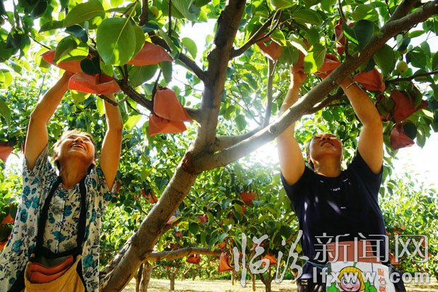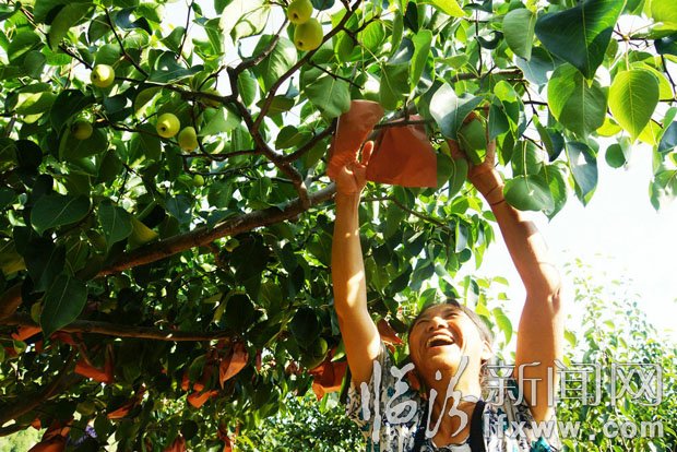 每年6月至7月初,是“中國金梨之鄉(xiāng)”隰縣梨農(nóng)最忙碌的季節(jié),夏季梨果套袋是最為關(guān)鍵的管理技術(shù)。隰縣盛產(chǎn)的聞名遐邇的“玉露香”、“酥梨”等品種,之所以果面光潔、色澤勻稱、汁分充沛、無害綠色,在市場獨占鰲頭,就是因為梨農(nóng)采用了這項技術(shù)。果農(nóng)頂著高溫平均每天要套5000個套袋。他們說:“這一套價錢就翻倍,我們套的是金蛋蛋啊!” 郝微微 攝