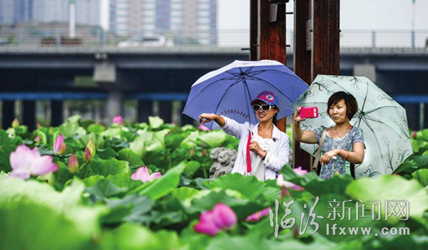 7月9日,市民打傘在雨中賞荷,別有一番風情。近日,我市汾河景區內的荷花競相開放,慕名前來的游人置身花海中,盡情欣賞盛夏荷花別樣的嬌媚。 記者 張蘊強 攝