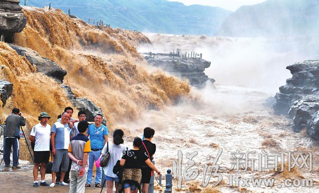 進入7月份,受上游降雨和水庫調節放水影響,黃河晉陜峽谷形成入汛以來第一次漲水,濁流滾滾奔騰而下,壺口瀑布水量猛增,主副瀑布連成一線、氣勢磅礴,吸引了眾多游客前來觀賞。 呂桂明攝