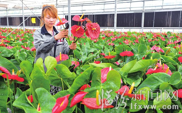 百里汾河堯都生態(tài)產(chǎn)業(yè)園自2010年啟動(dòng)以來,將現(xiàn)代農(nóng)業(yè)、體驗(yàn)農(nóng)業(yè)以及觀光農(nóng)業(yè)有機(jī)結(jié)合起來,帶動(dòng)了周邊農(nóng)民增收致富,目前,產(chǎn)業(yè)園內(nèi)12棟智能連棟溫室和43棟日光溫室已投入使用。圖為技術(shù)人員日前在百里汾河堯都生態(tài)產(chǎn)業(yè)園紅掌智能大棚內(nèi)整理花卉。本報(bào)記者 閆銳鵬 攝
