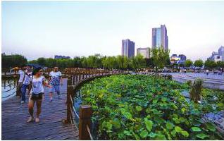 7月13日下午,一場(chǎng)陣雨不期而至,使得酷熱的夏季變得清爽起來(lái)。傍晚時(shí)分,許多市民走出家門(mén)伴隨著天邊一抹靚麗的晚霞,來(lái)到公園里欣賞美景,享受陣雨給夏季帶來(lái)的一絲涼意。