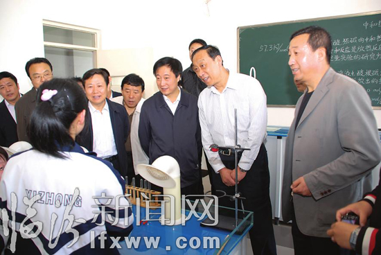 圖為謝海在霍州一中調研。 本報記者 魏華 攝
