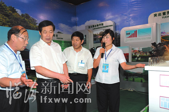 張寶順饒有興致地觀看了我市展廳,對我市三年來實施藍天碧水工程所取得的成績給予充分肯定。