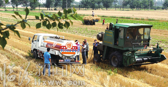 連日來,中國石化臨汾分公司侯馬片區一面備足油品,開辟農機具加油“綠色通道”,一面組織支農服務隊開展“送油到田頭、加油到機具、幫扶到農戶”便民服務活動。圖為6月10日,支農服務隊活躍在田間地頭。 本報記者 李虎威 攝