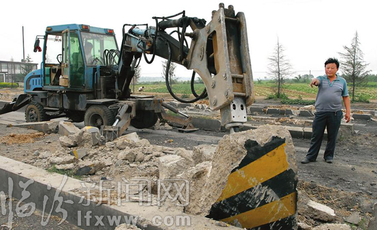 從6月1日起,臨汾公路分局襄汾公路段對管轄二級公路的所有收費站停止收費工作,同時,對收費站進行了拆除和路面還原。圖為6月7日,該段職工正在拆除收費站。 本報記者 閆銳鵬 攝