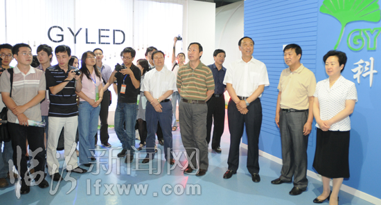 新聞發布會后,謝海接受了黃河新聞網記者的專訪,就我市推動“三個發展”,特別是轉型發展的具體舉措與記者進行了深入交流。隨后,記者團一行深入到光宇半導體照明有限公司進行了參觀采訪。