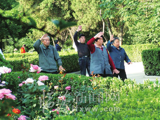 近年來,侯馬市傾力打造宜居綠色城市,先后建設了新田廣場、火車站廣場、晉國寶鼎公園和40多個街頭綠地,城市綠化覆蓋率達到42%。圖為該市市民正在市府路紫金園里晨練。 秦明忠 攝