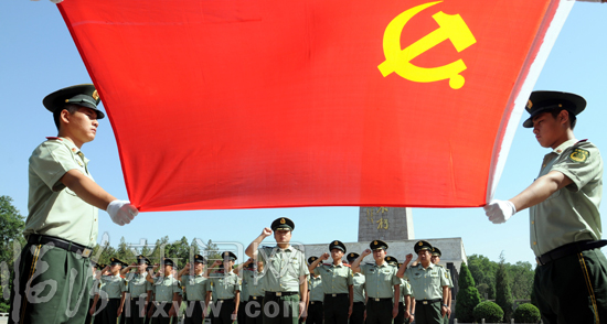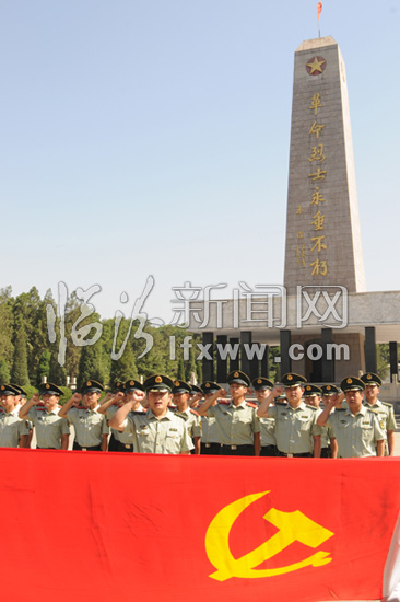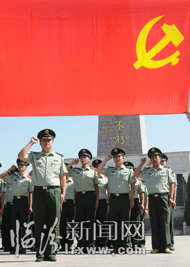 7月1日,在臨汾烈士陵園英雄紀念碑前,黨員們在重溫入黨誓言。 當日,是中國共產黨成立88周年。臨汾市公安消防支隊組織黨員來到烈士陵園,重溫入黨誓詞,緬懷革命先烈的豐功偉績。 臨汾新聞網記者 李虎威 攝