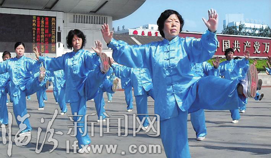 連日來,市區平陽廣場上,許多太極拳愛好者正在鍛煉身體。今年以來,我市不斷加大環境整治力度,空氣質量得到明顯改善。清早空氣清爽,許多市民紛紛走進附近的健身場所進行晨練。 張旦 攝