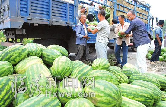 8月6日,大寧縣昕水鎮安古村的瓜農王建華正在往外地批發西瓜。王建華今年種植了24畝西瓜,畝產有2000多公斤,依靠科學管護,王建華種植的西瓜個頭大、水分足、甜度高,遠銷太原、河北等地,時常供不應求。本報記者 閆銳鵬 攝