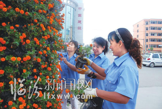 今年以來,翼城縣以“創建省級最佳宜居城市和全省最佳人居地”為目標,積極開展縣城主要街道實施立體組合式綠化工程,以提高城市綠化面積。圖為翼城縣城建局工作人員正在更換立體花柱上的鮮花。 本報記者李自強攝
