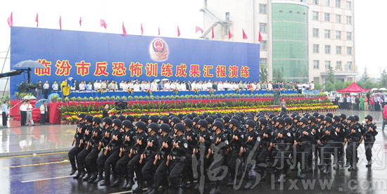 謝海代表市委、市政府對演練成功表示祝賀,并向參演的全體干警、官兵表示慰問。他指出,在新中國成立60周年即將來臨之際,全市反恐怖訓練成果匯報演練既是對反恐怖訓練成果的一次大檢閱,也是對全市國慶安保工作的一次大動員。近年來,我市各級公安部門和武警、消防部隊,在市委、市政府的領導下,堅持以科學發展觀為指導,緊緊圍繞全市工作大局,忠于職守,認真履職,為保障廣大群眾安居樂業、維護國家安全和社會穩定、推進“平安臨汾”建設做出了重要貢獻。
