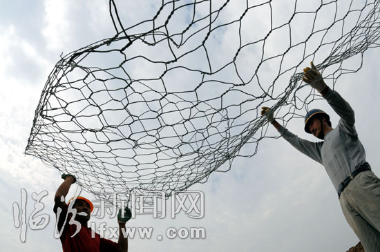 工人師傅正在制作用于加固內河堤岸的鉛絲籠場景二