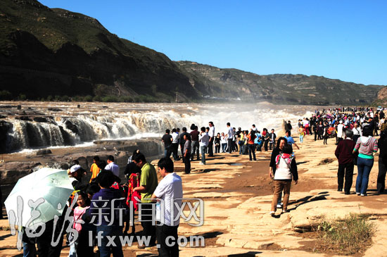 瀑布近前人流如潮。臨汾新聞網記者 張天斌 攝