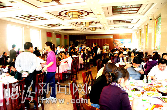 我市景區唯一的三星級酒店“壺口瀑布大酒店”飯廳吸引大批游人就餐。 臨汾新聞網記者 張天斌 攝