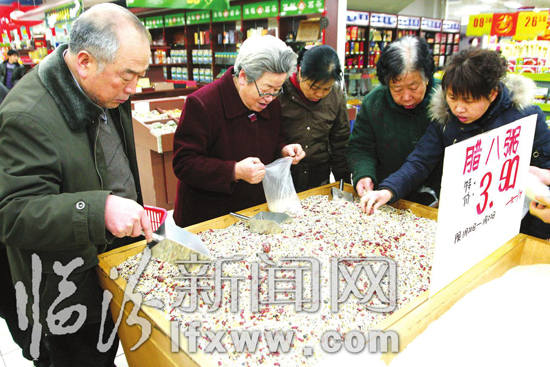 “買點配好的八寶米,回家泡一泡直接煮就行了。”昨天上午,在萬佳福倉儲超市家樂店的早市上,紅棗、綠豆、麥仁、紅豆、葡萄干等八寶粥配料裝在盒子里,顏色各異,品種多樣,吸引了不少市民選購,罐裝的八寶粥也受到了市民的熱捧。(記者 蘇亞兵 楊全 攝影報道)