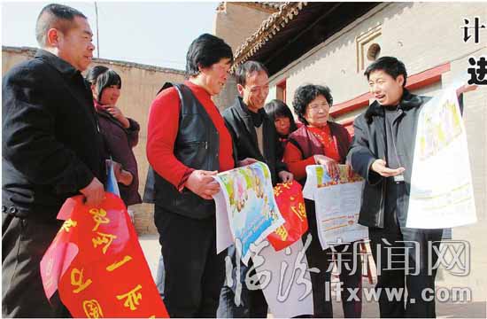 2月1日,襄汾縣新城鎮計劃生育服務所的工作人員正在為村民講解健康掛圖。春節臨近,該所組織計生服務隊,走進農戶為廣大育齡夫婦家庭送去計生宣傳掛歷和春聯,為村民講解計生工作的獎勵和扶助政策,深受村民的歡迎。本報記者 閆銳鵬 攝