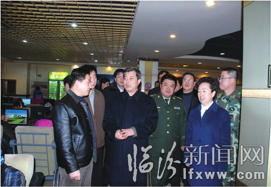 2月11日下午,市委副書記、市長(zhǎng)羅清宇帶領(lǐng)公安、文化、安監(jiān)等部門負(fù)責(zé)人,踏雪走訪文化市場(chǎng)和油、氣供應(yīng)站等場(chǎng)所,檢查節(jié)前安全工作。市委常委、宣傳部部長(zhǎng)黃翠蓮,副市長(zhǎng)白建榮陪同檢查。圖為羅清宇在世紀(jì)網(wǎng)吧進(jìn)行檢查。本報(bào)記者 李自強(qiáng) 攝