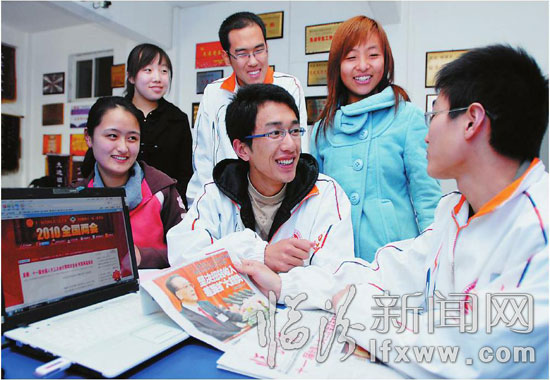 3月13日,山西師范大學(xué)物理與信息學(xué)院的學(xué)生正在討論兩會就業(yè)話題。全國兩會的召開,就業(yè)話題成為學(xué)生們熱議的焦點,他們紛紛將自己的觀點通過網(wǎng)民議事廳和全國網(wǎng)友交流、探討。本報記者 閆銳鵬 魏華 攝