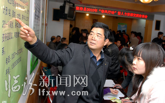 臨汾新聞網(wǎng)訊 3月15日,求職者在襄汾縣“春風(fēng)行動”暨人力資源交流洽談會上了解用工信息。當(dāng)日,襄汾縣舉辦“春風(fēng)行動”暨人力資源交流洽談會,20余家用工單位提供制造、冶煉、服裝加工、裝卸等1000余個崗位,吸引了大量求職者前來應(yīng)聘。 記者 閆銳鵬 攝