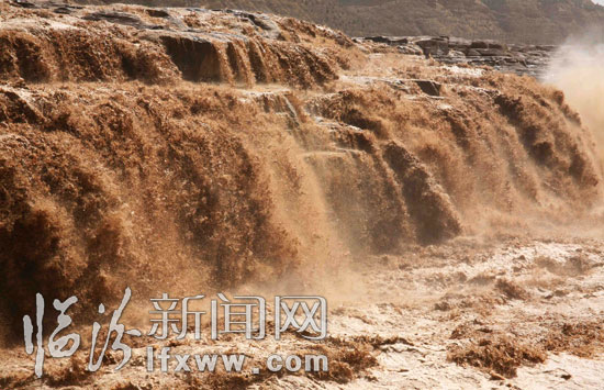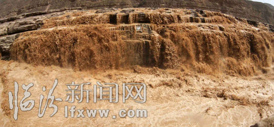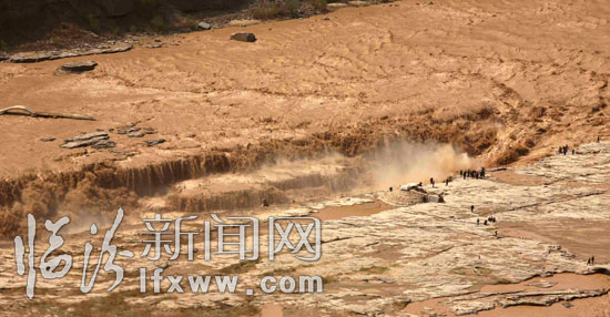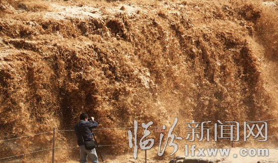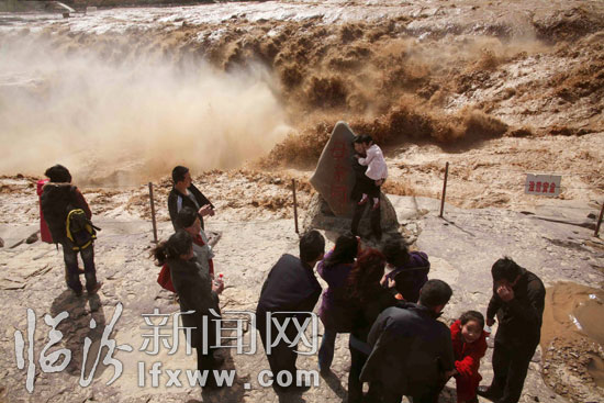 臨汾新聞網訊 4月1日,受桃花汛影響關閉了三天的黃河壺口景區今日開放,迎來眾多的游人觀看這難得的美景。 3月31日,壺口瀑布的桃花汛洪峰順利的通過了景區,當時景區內的觀景臺全部被洪水淹沒,上午10時左右,洪水退去,景區開放。此時黃河壺口瀑布展現出難得的美景,瀑布群一個連著一個非常壯觀,據當地人講,這樣的景觀已有十多年沒有出現過了,可能持續一個星期才會退去。(張 旦)
