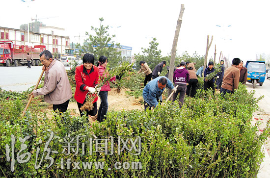 臨汾新聞網(wǎng)訊 4月10日,臨汾市城市綠化隊工作人員正在對濱河路北延的綠化帶進(jìn)行綠化。綠化隊抓住栽植苗木的最好時段,栽植苗木,綠化環(huán)境。 記者 李自強 攝