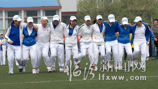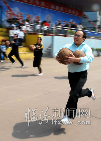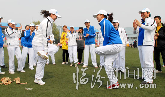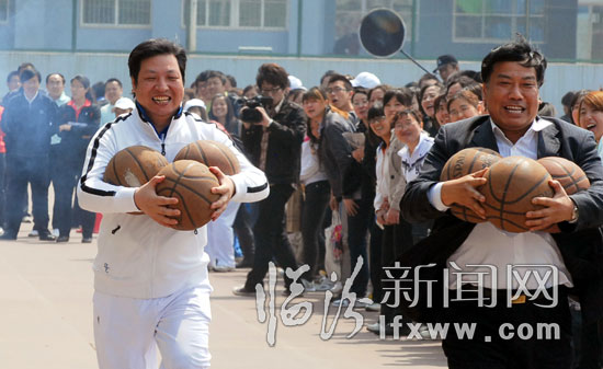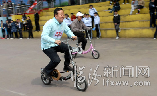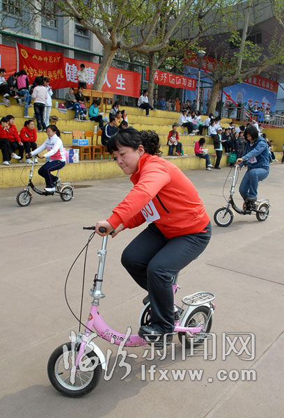 臨汾新聞網訊 4月24日,山西師范大學的教職工正在參加趣味比賽。當日,山西師范大學舉辦了主題為“健康快樂迎五一”的趣味運動會,全校2000余名教職工參加了斗雞、小輪車快慢跑、齊心走、跳大繩等10個項目的比賽,在運動中迎接五一勞動節的到來。(記者 閆銳鵬 攝)