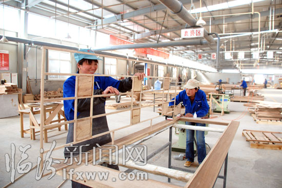 近日,侯馬開發區嘉藝木業有限公司的工人正在為西藏拉薩一家涉外酒店生產實木門。該公司是由一家煤焦企業轉型為生產中、高檔實木門的企業。產品先后獲得國家質量和衛生標準雙認證,獲得多項大獎,在全國建立了九十家銷售網點。今年三月初,被國家木門協會評為全國木門生產三十強企業。 本報記者 李自強 攝