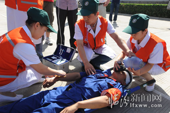6月18日,醫(yī)療救援人員搶救“傷員”。臨汾新聞網(wǎng)記者 李虎威 攝