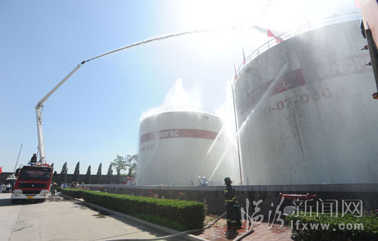 臨汾新聞網(wǎng)訊 6月18日,我市舉行危險化學(xué)品事故應(yīng)急救援演練。本次演練模擬“中石化山西臨汾石油分公司東蘆油庫一儲油罐爆炸起火”這一突發(fā)事件,啟動應(yīng)急救援方案。消防、安監(jiān)、石油、衛(wèi)生、環(huán)保等專業(yè)應(yīng)急救援隊伍參加演練。各縣市區(qū)安監(jiān)部門和重點企業(yè)440余人觀看了演練,本次演練旨在提高指揮協(xié)調(diào)能力、現(xiàn)場救援搶險能力、應(yīng)急保障能力和處置突發(fā)事故能力,最大限度地降低和控制事故造成的損失。(記者 李虎威 攝)