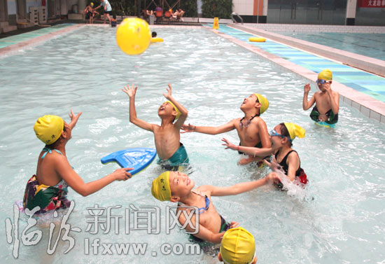 臨汾新聞網訊 24日上午,在我市一家游泳館,游泳消暑的小朋友正在一起玩耍嬉戲。據該游泳館運營部經理柳學琴介紹,這幾天天氣炎熱,每天下午三點以后來這里游泳的人就特別多,禮拜六、日常常是爆滿。(記者 蘇亞兵 郝海軍 攝)