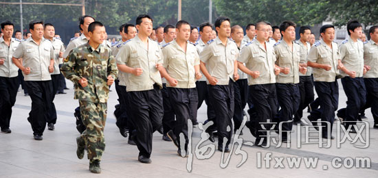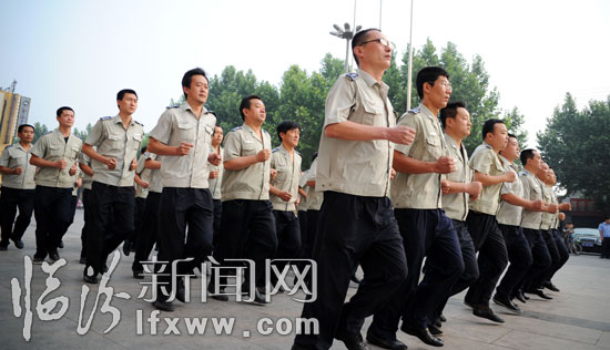 臨汾新聞網訊 6月27日,市容監察支隊的隊員在參加軍訓。為進一步加強市容管理隊伍紀律作風建設,該支隊開展了為期20天的法律法規、文明管理、精神風貌為主要內容的學習教育和軍事培訓活動,旨在以嚴明的紀律,過硬的作風更好的服務于城市管理。(本網記者 閆銳鵬 攝影報道)