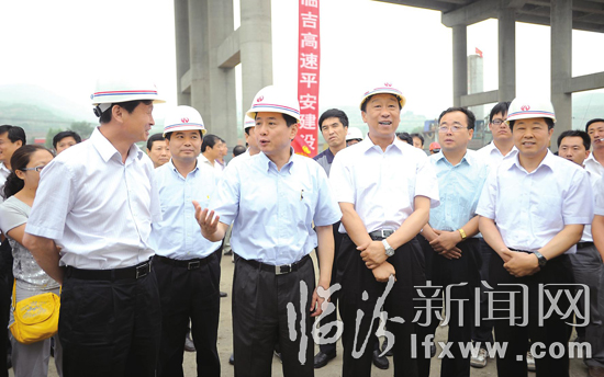 7月8日,省委常委、常務(wù)副省長(zhǎng)李小鵬深入到所聯(lián)系的省重點(diǎn)工程——臨汾至吉縣高速公路,實(shí)地查看工程建設(shè)進(jìn)展情況,看望慰問(wèn)了在一線施工的建設(shè)者,研究協(xié)調(diào)工程建設(shè)中的有關(guān)問(wèn)題。他強(qiáng)調(diào),各級(jí)各部門要充分認(rèn)識(shí)臨吉高速公路在我省經(jīng)濟(jì)社會(huì)發(fā)展中的重要地位和作用,進(jìn)一步提高認(rèn)識(shí)、加強(qiáng)協(xié)調(diào)、密切配合、共同推進(jìn)工程的順利進(jìn)行,努力打造“安全工程、優(yōu)質(zhì)工程、高效工程、廉潔工程、陽(yáng)光工程”,為促進(jìn)當(dāng)?shù)亟?jīng)濟(jì)社會(huì)的又好又快發(fā)展做出積極貢獻(xiàn)。省政府副秘書長(zhǎng)韓和平,省住建廳長(zhǎng)王國(guó)正,交通廳長(zhǎng)段建國(guó)、副廳長(zhǎng)王志民等隨同。市領(lǐng)導(dǎo)謝海、羅清宇、徐樹榮、王文英、趙建民陪同。圖為李小鵬在臨吉高速公路七郎廟特大橋建設(shè)工地檢查指導(dǎo)工作。