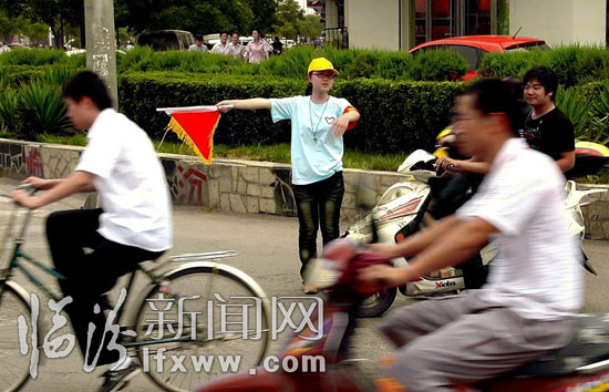 在臨汾市鼓樓南紅樓大十字路口上崗執(zhí)勤的大三女大學(xué)生武苗璊告訴記者說,暑假期間自愿參與這次活動的大約有110名學(xué)生,他們多是大三大四學(xué)生,學(xué)生們自愿走上街頭用實(shí)際行動體驗(yàn)和維護(hù)社會公共安全環(huán)境,這讓他們感到非常快樂和光榮。(李典平 攝影報(bào)道)