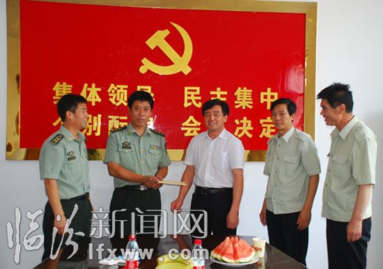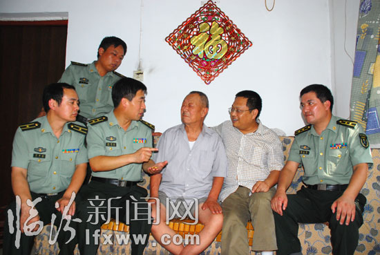 人武部干部慰問解放戰(zhàn)爭和抗美援朝老紅軍李學(xué)元。