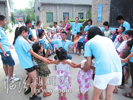 “找呀找呀找朋友,找到一個(gè)好朋友,敬個(gè)禮呀握握手,你是我的好朋友……”暑假期間,本應(yīng)靜悄悄地襄汾北焦彭村小學(xué)內(nèi),不時(shí)傳來陣陣笑聲。興高采烈的孩子們與一群大哥哥大姐姐一起學(xué)英語、做游戲,他們用稚嫩的筆在親手折疊的千紙鶴上寫下自己心愿,在團(tuán)隊(duì)小活動中體會著合作帶來的快樂。