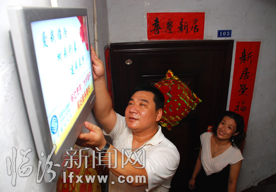 臨汾新聞網(wǎng)訊 8月12日,在東關(guān)花園小區(qū)樓道內(nèi),壁掛式傳媒感應(yīng)燈工作人員正在對(duì)感應(yīng)燈進(jìn)行調(diào)試。據(jù)了解,堯都區(qū)開展的“樓道文化照明工程”在東關(guān)花園小區(qū)樓道內(nèi)安裝的85盞感應(yīng)燈首批試點(diǎn)成功。使用壁掛式傳媒感應(yīng)燈代替?zhèn)鹘y(tǒng)的樓道照明設(shè)施,具有樓道照明、信息傳達(dá)、文明教育等功能,在照明、節(jié)能、節(jié)電、裝點(diǎn)美化樓道的同時(shí),使居民能夠能得到直觀的道德教育并獲取有關(guān)的社會(huì)信息。據(jù)悉將有2000盞傳媒感應(yīng)燈安裝在各小區(qū)。(記者 李自強(qiáng) 攝影報(bào)道)