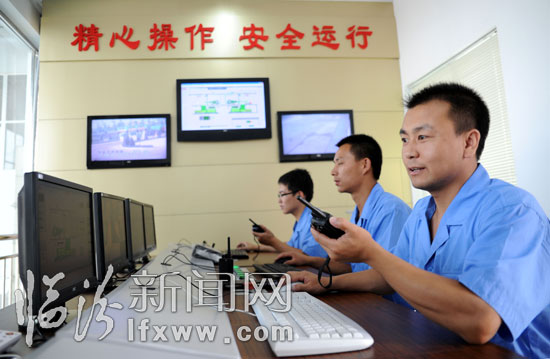 市垃圾壓縮轉(zhuǎn)運中心數(shù)控車間工作人員在查看設(shè)備運轉(zhuǎn)情況。